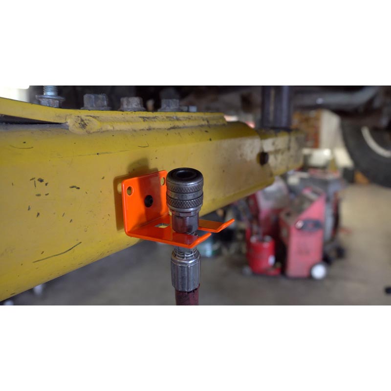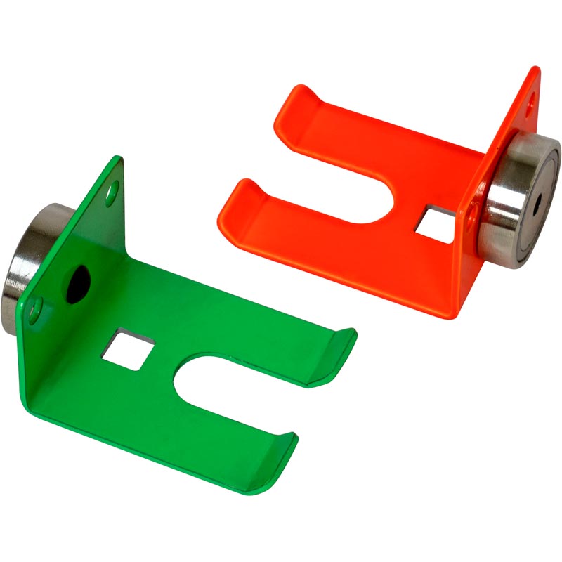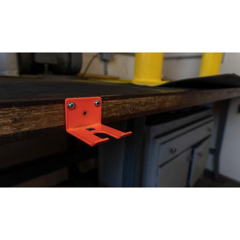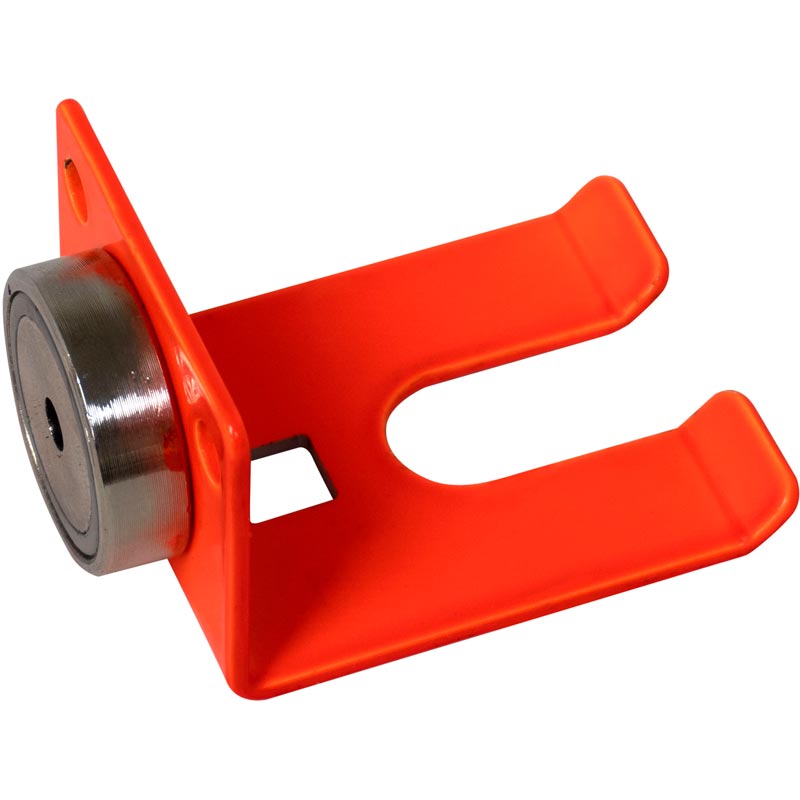 Add the Lisle 49700 Air Hose Holder – Orange to your garage. This Holder is covered in a bright orange powdercoat finish for durability and visibility. The Air Hose Holder can support most 3/8″ to 1/2″ shop air hoses and keeps them off the floor and in a safe place. The Holder has a strong magnet on its back so it can be attached to ferrous metal surfaces or it can be permanently mounted with screws.